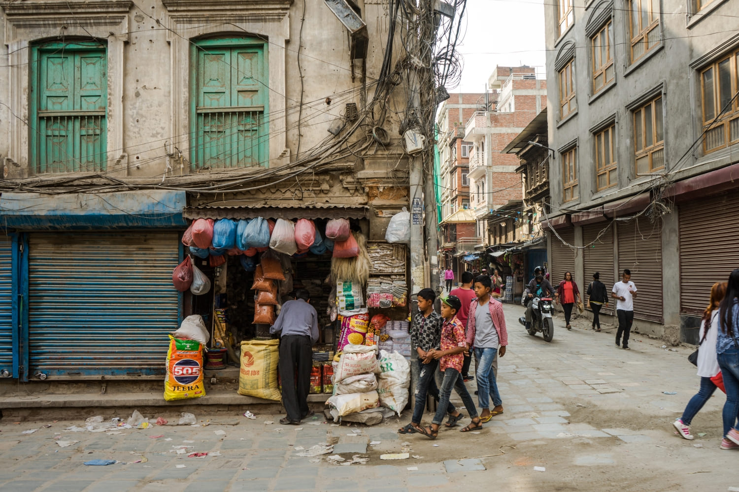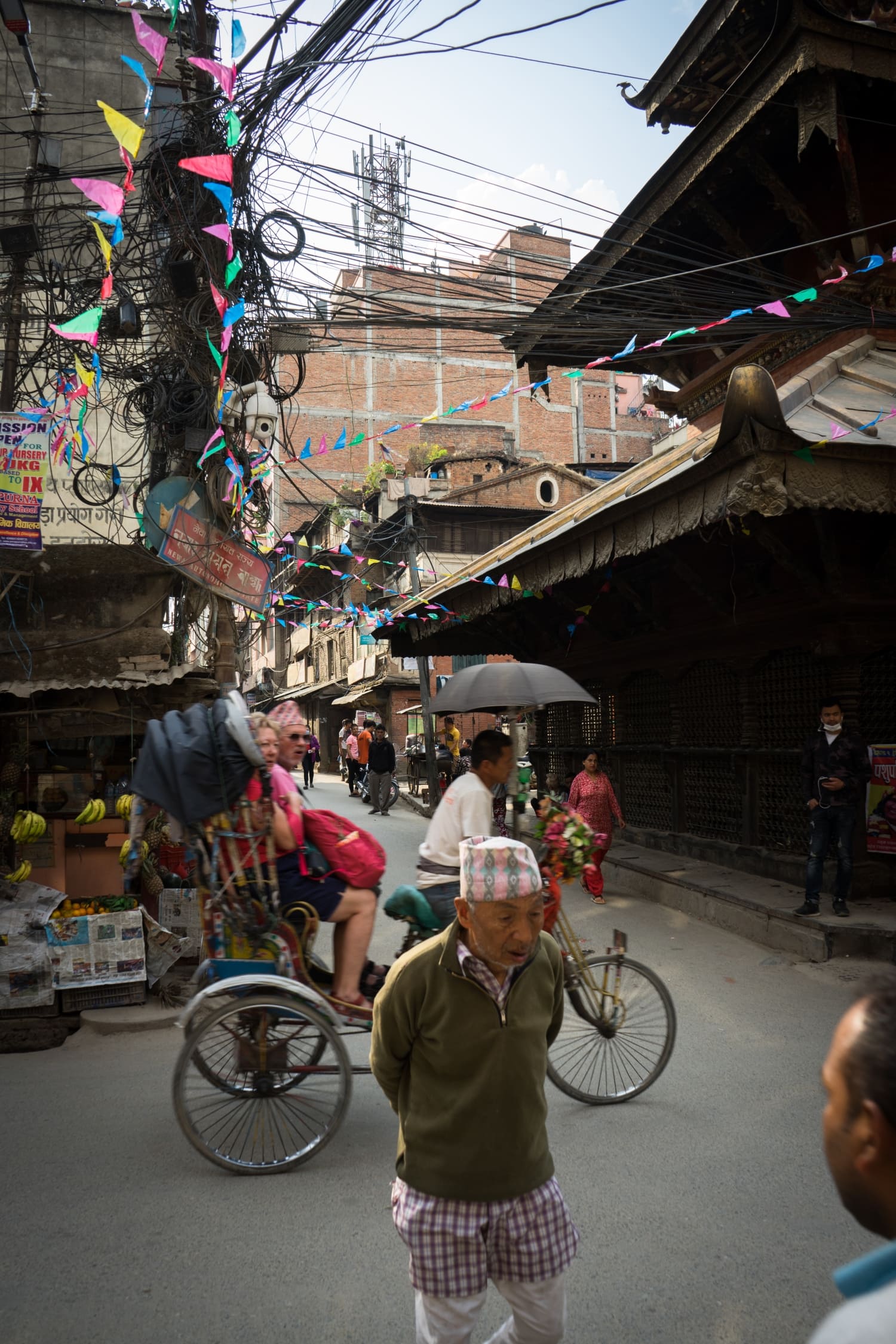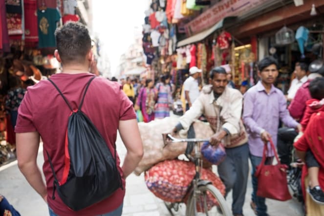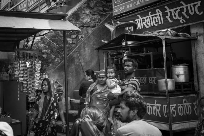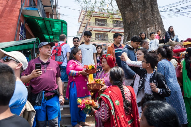 Nuestro viaje al Himalaya nos llevó también a las dos principales ciudades de Nepal, Kathmandú y Pokhara. La primera, capital del país, con más de un millón de personas viviendo en un enjambre de callejuelas. Entre contaminación y polvo surgen mil colores en las ropas, los comercios, los banderines de los templos. Todo un espectáculo de contrastes y de un caos casi agobiante.