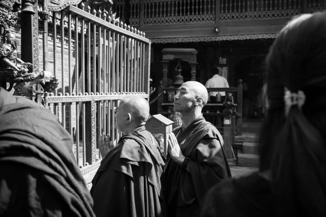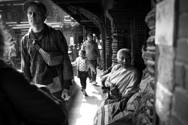 Poner un pie en Kathmandú es meterse de lleno en un caos inmenso de calles abarrotadas, ruido, contaminación, ropas de colores, ceremonias y templos. Un contraste que cuesta digerir, entre la paz del interior de sus templos o incluso de algún bar en el que tomar una cerveza Everest, y el tumulto de personas y coches que circula por las calles. Nos encontramos continuamente bombardeados por estímulos de toda clase, y me encuentro tratando de captar mil escenas con la cámara.