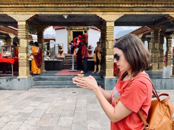 Camino de nuestra siguiente ciudad, en las montañas de Gorkha, visitamos el Templo de Manakamana. Para llegar hasta él, damos un paseo en teleférico que nos remonta los mil metros de desnivel que nos separan del templo, en lo alto de la montaña. Manakamana es uno de los dos templos de Nepal en los que a día de hoy se siguen realizando sacrificios. El movimiento de personas que llevan animales a la diosa Bhagwati es tal que incluso hay cabinas solo para cabras, que sólo compran billete de ida. En función de las posibilidades económicas, las familias acuden allí con una paloma, un gallo, un cerdo o un cabra para pedir favores. La mezcla de olores que allí se respira es indescriptible, entre inciensos, comidas especiadas y sangre. Cánticos y campanillas de colores no dejan de escucharse un sólo momento, en una fiesta que tiene más de jolgorio que de solemne. Todo un espectáculo.