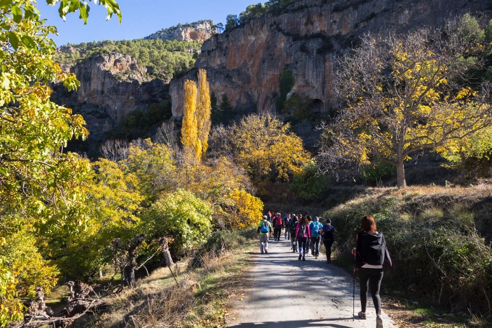 Las etapas de otoño tuvieron un colorido muy especial, por doradas veredas serpenteantes que marcan la pista del río. Desde su nacimiento en Santiago-Pontones (Jaén) hasta el precioso pueblo de Letur (Albacete), poco a poco fuimos dando paso a escenarios más invernales, en los que los árboles perdieron sus hojas y caminamos por campos despoblados y áridos.